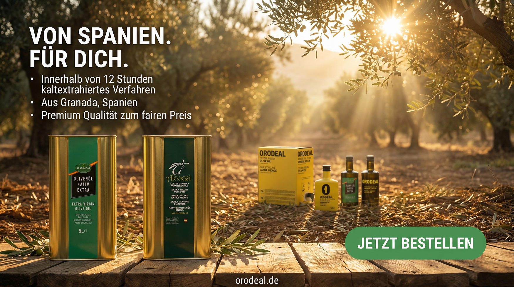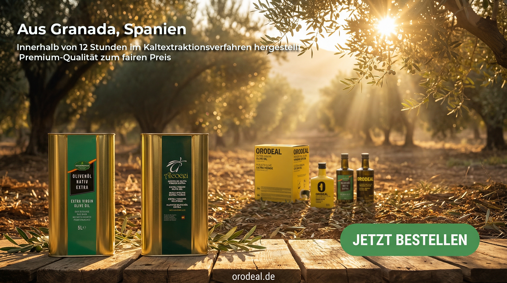 Entdecken Sie die Bestseller von Orodeal: das kräftige Orodeal Premium, das milde Orodeal und das süßliche Alcocei. Aus besten spanischen Oliven hergestellt, bieten sie unvergleichlichen Geschmack und höchste Qualität.